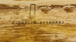 制作日記 おつゆ描き|夕陽に染まる保田漁港-2